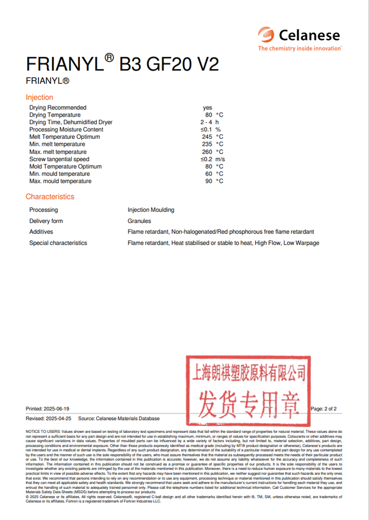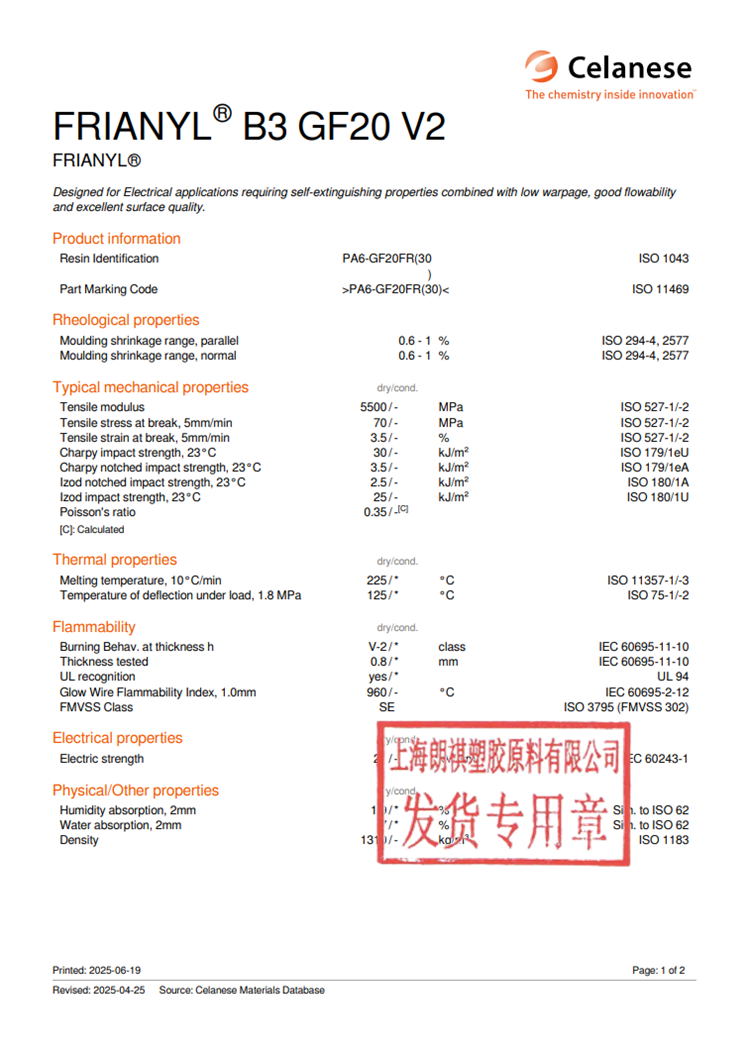 聚酰胺 6(尼龙6)Frianyl® B3 GF20 V2 低翘曲性 流动性高